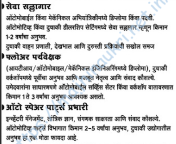 | मुलाखतीचे ठिकाण | मोटोनेक्स्ट सुझुकी, प्लॉट क्रमांक २१८६/ए/३१६, नारी रोड, ऑटोमोटिव्ह चौक, नागपूर. |
