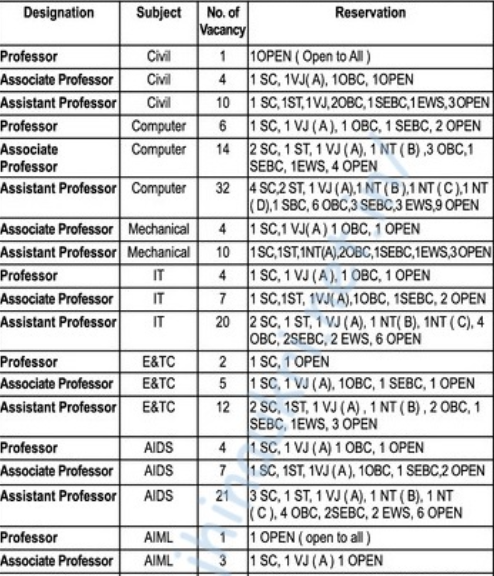 मोझे कॉलेज ऑफ इंजिनिअरिंग बालेवाडी आणि वाघोली, पुणे भरती २०२५ | |