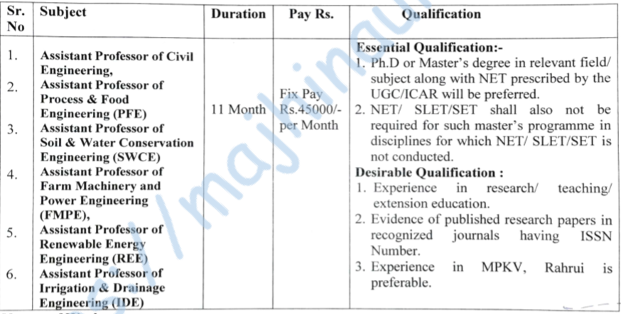 • For all the details of post, terms & conditions, experience, selection procedure, application procedure, prescribed format application form, documents required along with application form ref. PDF/Visit website – https://mpkv.ac.in/.