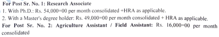 • Posts Name – 1) Research Associate 2) Agriculture Assistant/Field Assistant