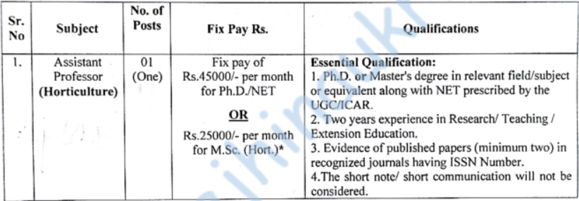 या पदांसाठी भरतीसहाय्यक प्राध्यापक – उद्यानविद्या