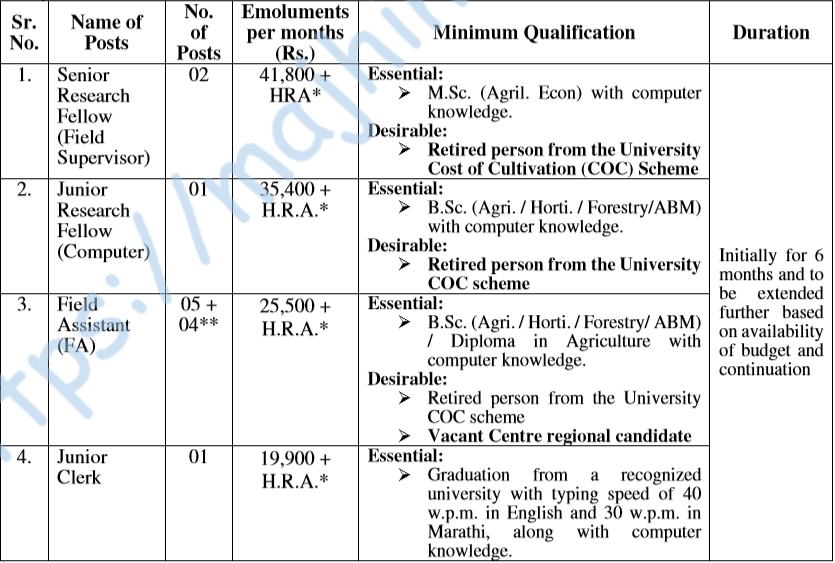 - Address for application – Field Officer (I), Comprehensive Scheme, Department of Agricultural Economics, Mahatma Phule Krushi Vidyapeeth, Rahuri, Dist. Ahilyanagar – 413722 (MS).