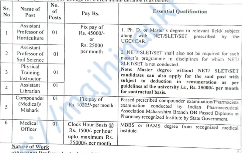 - For detailed information about the selection procedure, terms & conditions, application procedure, prescribed format application form, other instructions, etc. about the above posts ref. PDF/visit website – http://mpkv.ac.in/.