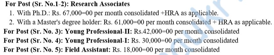 - Posts’ name – 1) Research Associates 2) Young Professional-II 3) Young Professional-I 4) Field Assistants