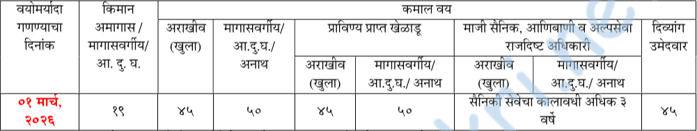 - वयोमर्यादा – (तक्ता पहा/PDF/वेबसाईट बघावी) –