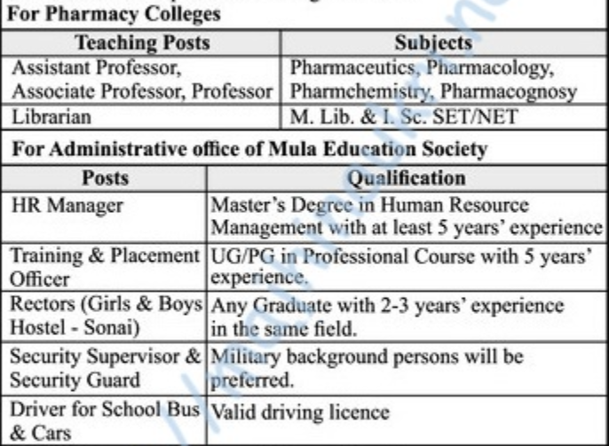 Mula Education Society Recruitment 2025 – Mula Education Society, Sonai, Tal. Newasa, Dist. Ahilyanagar invites Offline applications & has arranged interview on date 1/11/2025 to fill up various Teaching & Non-Teaching posts in it’s Pharmacy Colleges & Administrative Office. The job location is Ahilyanagar. The Official website & PDF/Advertise is given below.