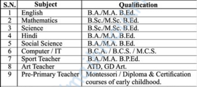 - Educational qualification – See table/advertise.
