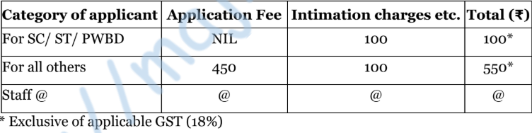 - अर्ज शुल्क – (अर्ज शुल्क भरणा प्रक्रियेविषयी सविस्तर माहितीसाठी तक्ता पहा/PDF/वेबसाईट पहा) –