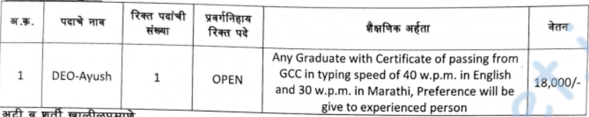 - Address for application – 113 to 114, 1st Floor, National Health Mission, New District Council Building, Boisar Road, Kolgaon, Dist. Palghar.