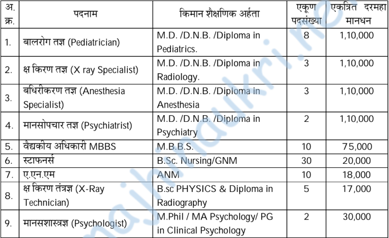 - Address for application – Public Health Department, 3rd Floor, Rajiv Gandhi Bhavan, Nashik Municipal Corporation, Sharanpur Road, Nashik.