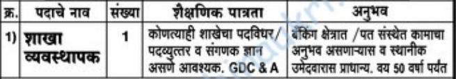 • वयोमर्यादा – ५० वर्षांपर्यंत. (जाहिरात बघावी)