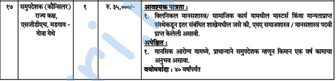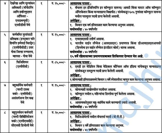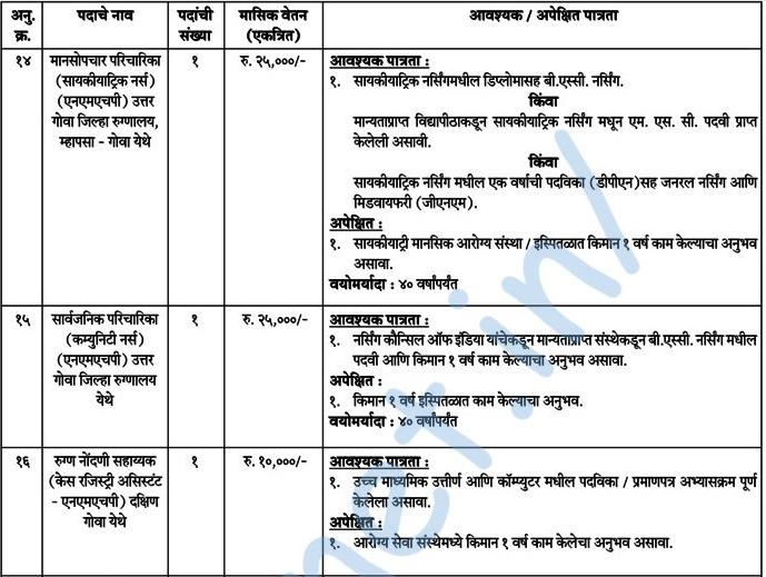 - मुलाखतीचे ठिकाण – एफ-१९, पहिला मजला, राज्य कुटुंब कल्याण केंद्र, आरोग्य सेवा संचालनालय, कॅम्पाल, पणजी, गोवा.