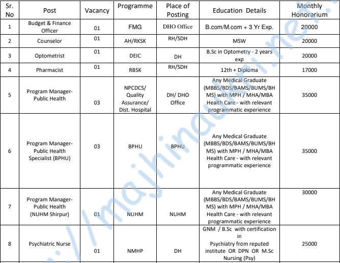 - Address for application – National Health Mission Office, Civil Hospital Campus, Sakri road, Dhule.