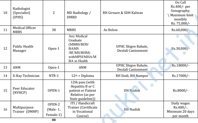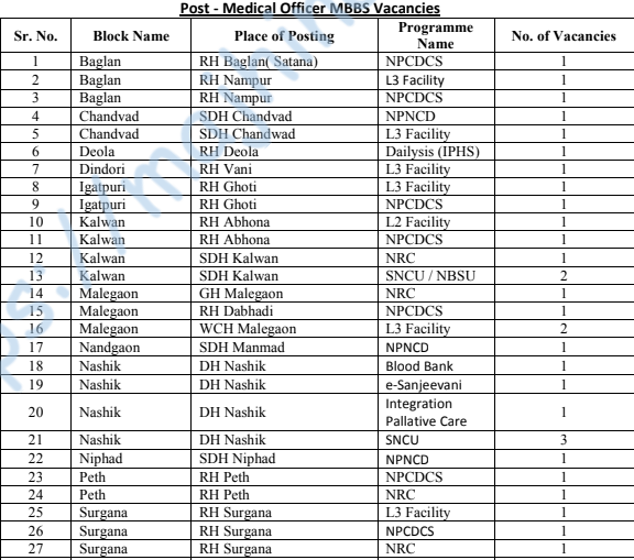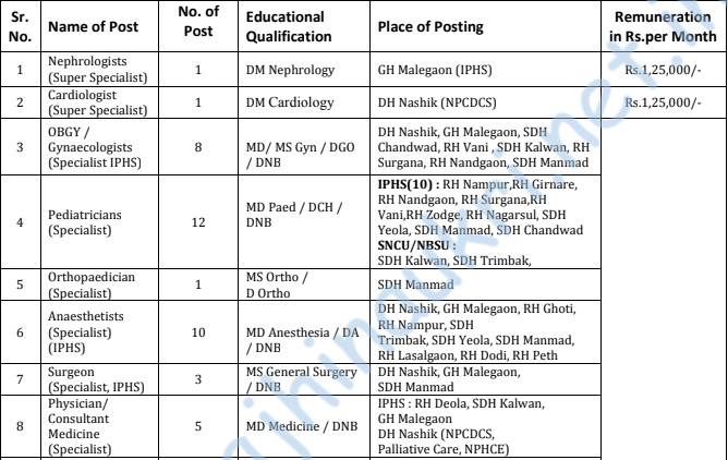 - Address for application – National Health Mission Office, District Hospital Campus, Tryambak Road, Nashik.