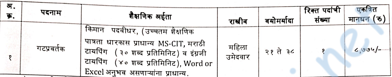 - वेतनमान – रु. ८,७७५/- दरमहा. (तक्ता पहा/PDF/वेबसाईट बघावी)