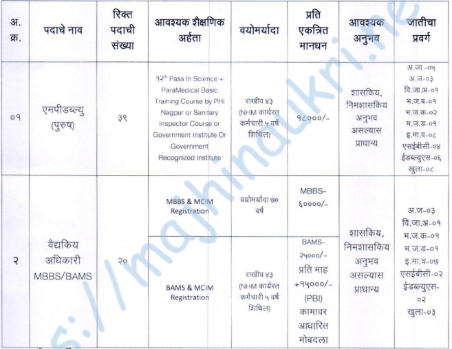 • Posts’ name – 1) MPW (Male) 2) Medical Officer (MBBS/BAMS)