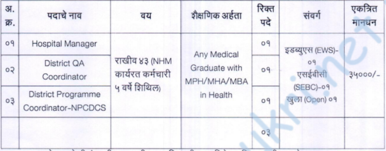 - Address for application – National Health Mission Office, District Council, Satara.