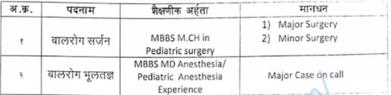 - Name of the post – 1) Paediatric Surgeon 2) Paediatrician
