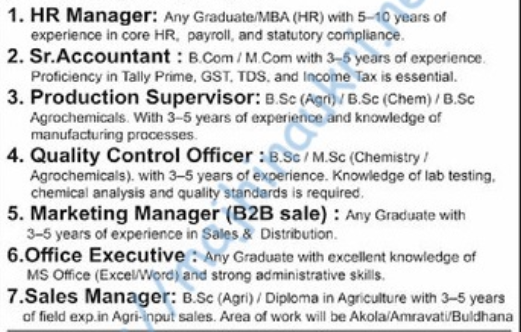 निर्माण फर्टिलायझर्स प्रायव्हेट लिमिटेड, अकोला भरती २०२४ | |