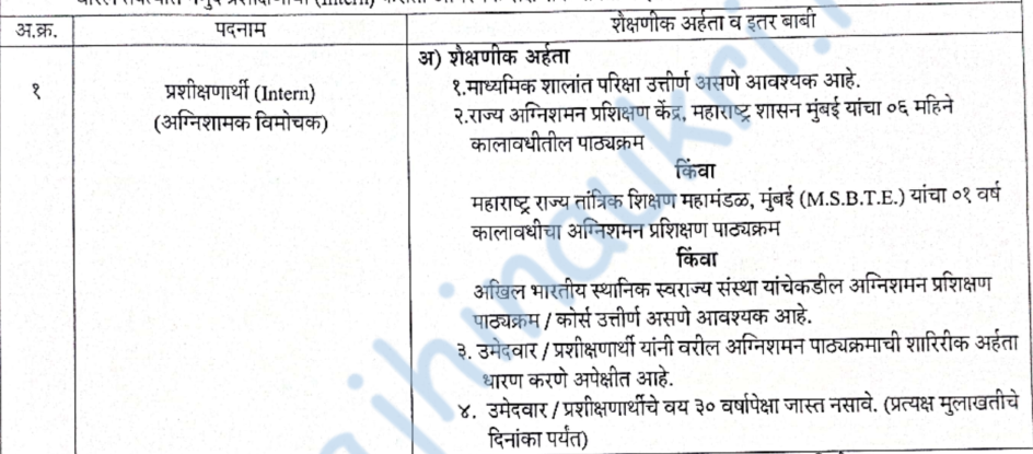 - १) सहाय्यक अग्निशमन अधिकारी – ४२ वर्षांपेक्षा अधिक नसावे.