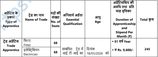 NPCIL Apprenticeship 2026 – Nuclear Power Corporation Of India Limited invites Online applications till last date 18/03/2026 from ITI passed candidates for Engagement of ITI Trade Apprentices in the Rawatbhata Rajasthan Site, Kota, Rajasthan. There are total 245 seats. The training location is Rawatbhata Rajasthan Site, Kota, Rajasthan. The Official website & PDF/Advertise is given below.