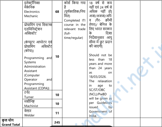 - Educational qualification – ITI Pass Certificate in respective trade. (Ref. PDF/Visit website)