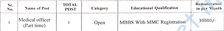 - Medical Officer (Part Time) – Rs. 30,000/- pm.