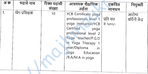 | या पदांसाठी भरती | योग प्रशिक्षक |