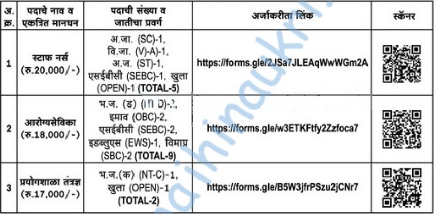 • अर्जाची लिंक – तक्ता पहा/जाहिरात/PDF/वेबसाईट बघावी.