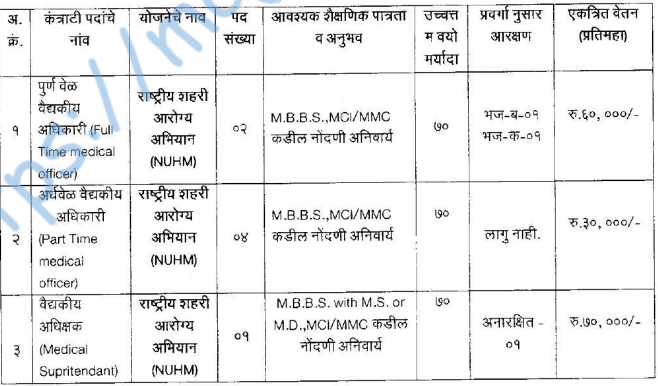 - वैद्यकीय अधिकारी – अर्धवेळ