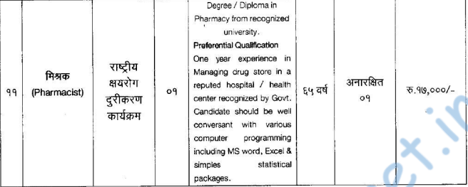 - 6) Pharmacist – i) NUHM ii) NTCEP