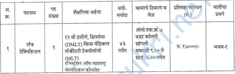- अर्जाचा पत्ता – वैद्यकीय आरोग्य अधिकारी, आरसीएच कार्यलय, पाण्याच्या टाकीखाली, आपटा पोलीस स्टेशन शेजारी, उत्तर शिवाजीनगर, सांगली – ४१६४१६.