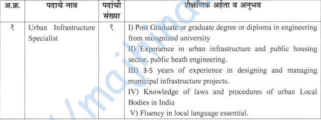 | या पदांसाठी भरती | अर्बन इन्फ्रास्टक्चर स्पेशालिस्ट |