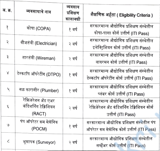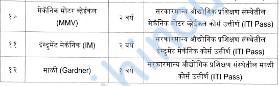 - प्रशिक्षण कालावधी – PDF/वेबसाईट बघावी.