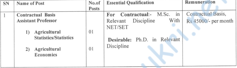 | या पदांसाठी भरती | सहाय्यक प्राध्यापक – कृषी सांख्यिकी/सांख्यिकी आणि कृषी अर्थशास्त्र |