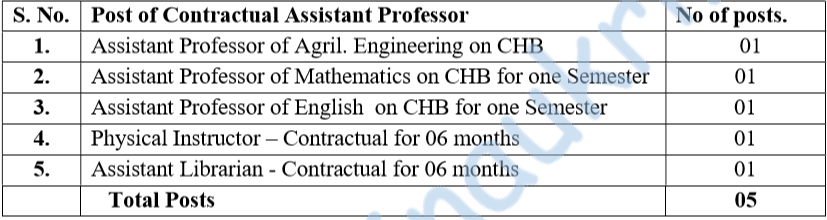 - Posts Name – Assistant Professor – English (Language), Mathematics, Statistics, Physical Education & Agri. Informatics.