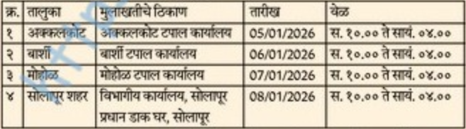 भारतीय टपाल विभाग, सोलापूर भरती २०२६ | |