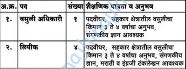 - Posts’ name – 1) Clerk 2) Recovery Officer