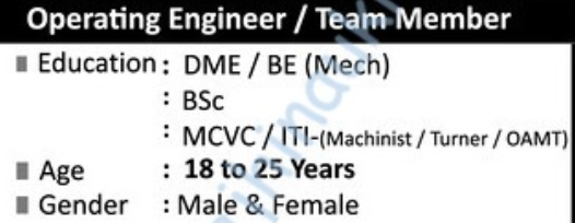 - Educational qualification – DME/BE (Mechanical). (See advertise)