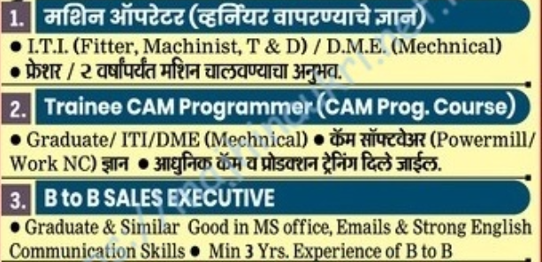 Prime Graphite Recruitment 2025 – Prime Graphite Pvt. Ltd., Nashik invites Online applications to fill up posts of Machine Operator, Trainee CAM Programmer & B to B Sales Executive. The job location is Nashik. The Official website & PDF/Advertise is given below.