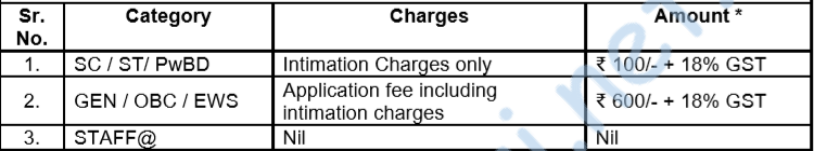 - Application fee – Rs. 450/- (OBC/General/EWS candidates) & Rs. 50/- (SC/ST/PwBD/ EXS candidates). (Ref. PDF/Visit website)
