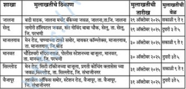 | मुलाखतीचे ठिकाण | (तक्ता पहा/जाहिरात बघावी) –![]() |