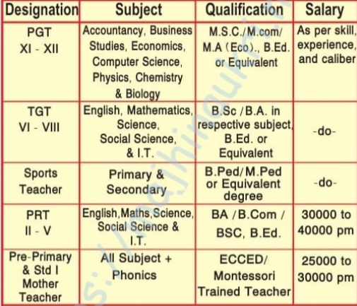 • Educational qualification – See table/advertise.