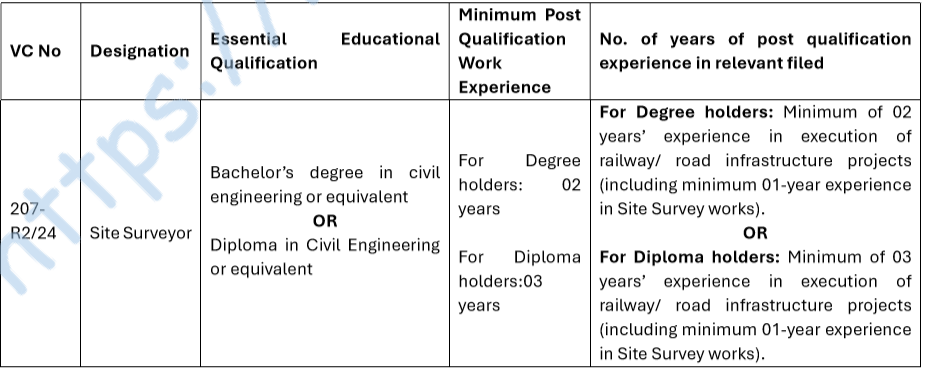 या पदांसाठी भरती साईट सर्व्हेयर शैक्षणिक पात्रता आणि अनुभव शैक्षणिक पात्रताकरिता तक्ता पहा/PDF/वेबसाईट बघावी. एकूण पद संख्या १ जागा नोकरीचे ठिकाण राजस्थान आणि गुजरात. अर्ज पद्धती ऑनलाईन. अर्ज करण्यासाठी अंतिम तारीख दि. ३/११/२०२५ सकाळी ११.०० वाजेपर्यंत.