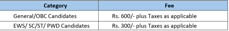 - Application fee – (See table/Ref. PDF/Visit website) –