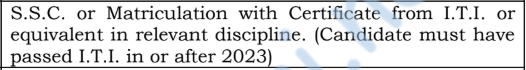 - Posts’ name – Trainee (Craft) – 1) Carpenter Trade 2) Electronics Trade.