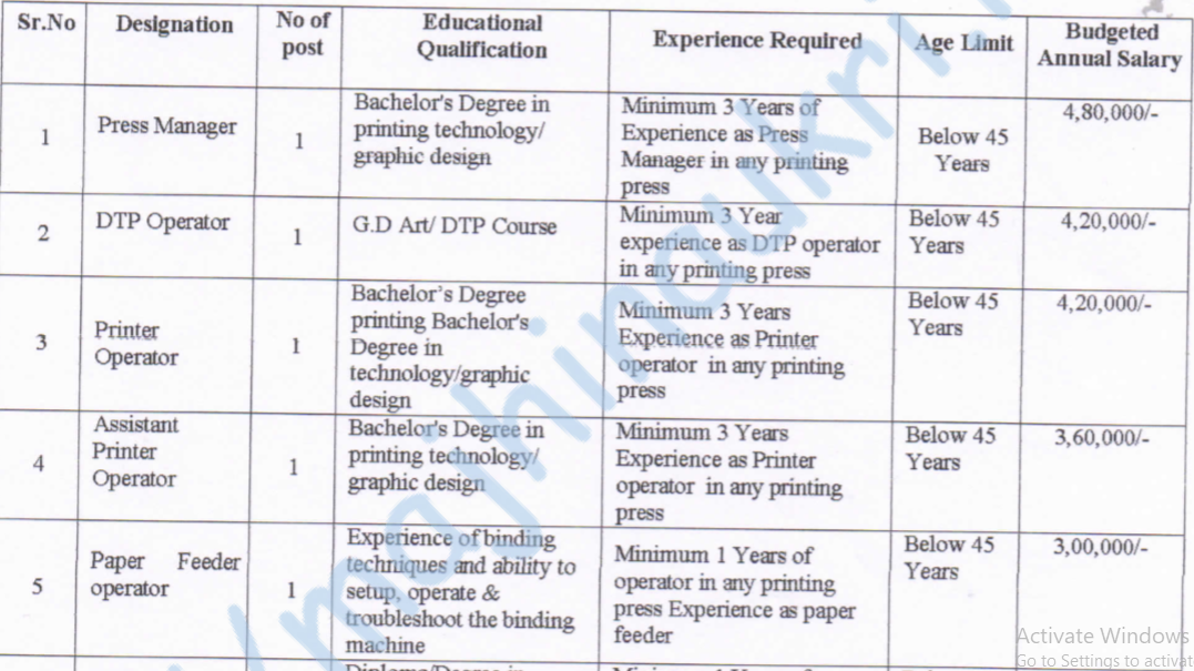 रयत शिक्षण संस्था, सातारा यांनी प्रसिद्ध केलेल्या जाहिराती नुसार रयत शिक्षण संस्थेचे मुद्रणालय, सातारा येथे प्रेस मॅनेजर, डी.टी.पी. ऑपरेटर, प्रिंटर ऑपरेटर, असिस्टंट प्रिंटर ऑपरेटर, पेपर फीडर ऑपरेटर, बॉयलर मशीन ऑपरेटर, कटिंग ऑपरेटर, बाईंडर, हेल्पर आणि अकाऊंट असिस्टंट पदभरतीसाठी दि. २८/१/२०२६ पर्यंत विहित नमुन्यातील ऑनलाईन अर्ज मागवण्यात येत आहेत. या भरती अंतर्गत एकूण १० जागा आहेत. अधिकृत वेबसाईट आणि PDF जाहिरात लिंक खाली दिलेली आहे. “माझी नोकरी” या लिंक वरून टेलिग्राम चॅनल लगेच जॉईन करा.
