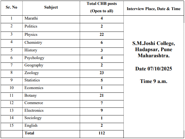 - मुलाखतीचे ठिकाण – एस. एम. जोशी महाविदयालय, हडपसर, पुणे, महाराष्ट्र.