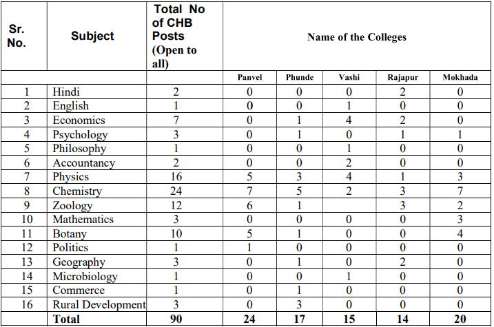 - मुलाखतीचे ठिकाण – महात्मा फुले कला, विज्ञान आणि वाणिज्य महाविदयालय,पनवेल, जि. रायगड, महाराष्ट्र.