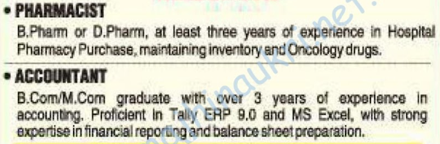 राष्ट्रसंत तुकडोजी कॅन्सर हॉस्पिटल, नागपूर यांनी प्रसिद्ध केलेल्या जाहिराती नुसार येथे फार्मासिस्ट आणि लेखापाल पदभरतीसाठी दि. ३१/१०/२०२५ पर्यंत ऑनलाईन अर्ज मागवण्यात येत आहेत. अधिकृत वेबसाईट आणि PDF जाहिरात लिंक खाली दिलेली आहे. “माझी नोकरी” या लिंक वरून टेलिग्राम चॅनल लगेच जॉईन करा.